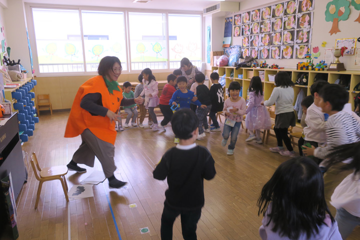 10月の英語あそびはスペシャル! 先生がかわいい仮装でやってきましたよ😊 ハロウィンにまつわるゲームで盛り上がりました☆