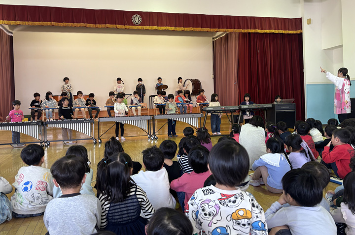 発表会に向けて各クラスで練習している歌や合奏の頑張りを実際にステージに立って発表しました! 年長さんの演奏の迫力に目を輝かせていましたよ☆