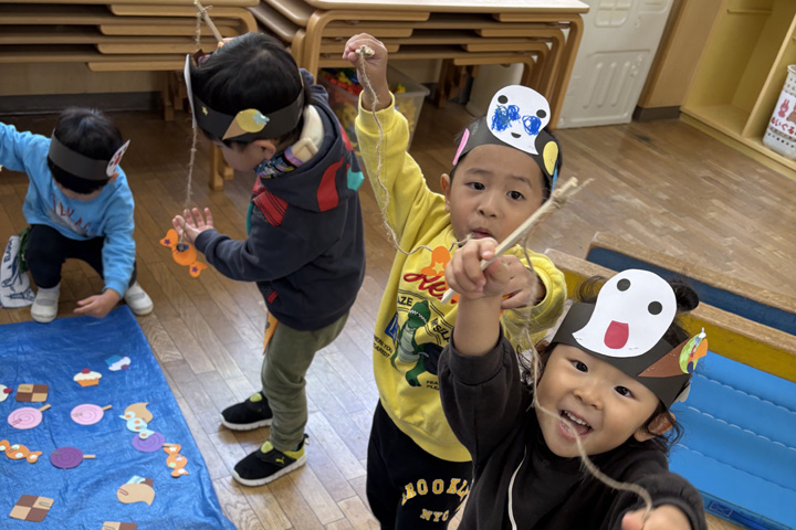 年少さんのお部屋にはおやつ釣りやクモの巣くぐり等の楽しいアトラクションが登場!! 大盛り上がりのパーティーになりました🎃
