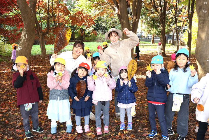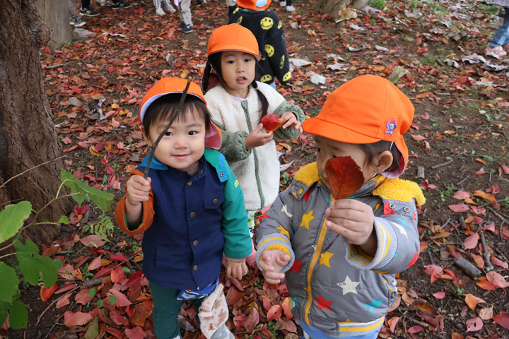 秋のわかばキッズランドには楽しいことがいっぱい! 自由遊びは勿論のこと、クラス活動や、製作の材料探し等でいろいろなクラスが遊びに行っていました。
