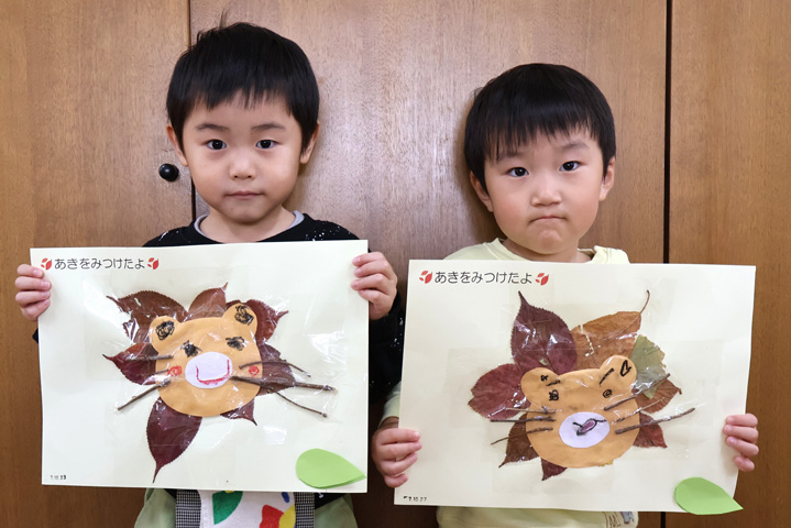 大きな葉っぱやきれいな色・形の葉っぱ🍂 みんなたくさんの宝物を見つけました。