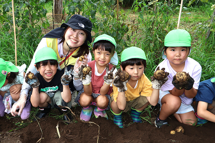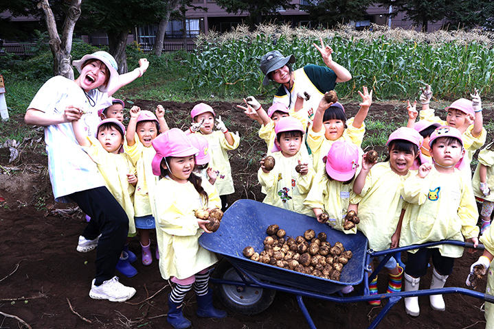 年少さんも小さい手で一生懸命ほりました! 大きいお芋を見つけて笑顔いっぱいです。