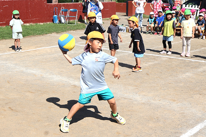 年長さんの恒例行事ドッジボール大会! クラスの友達と力を合わせて、 たくさん練習してきました。