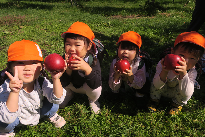 大きくて真っ赤なリンゴを選んで1人1つずつとりました。 大喜びで食べるのを楽しみにしていたみんな✨ 大事にお家に持ち帰りました。